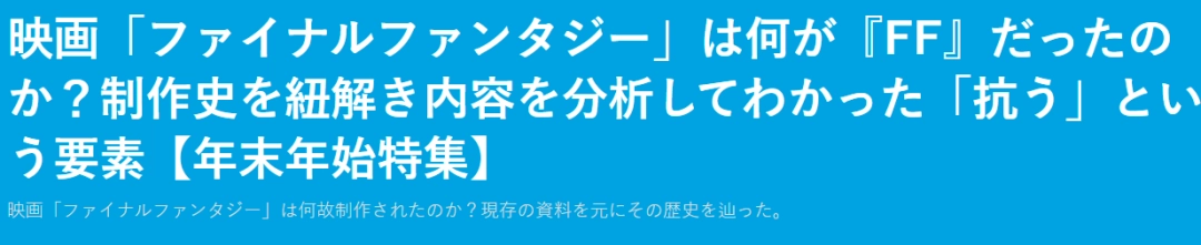 ·1996年启动《最终幻想》CG电影策划,源起FF7大量CG过场收获的好评。