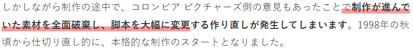 ·但是问题来了,在制作中途时收到发行方(索尼)哥伦比亚影业的压力,积累的素材全部废弃,剧本也被大改。