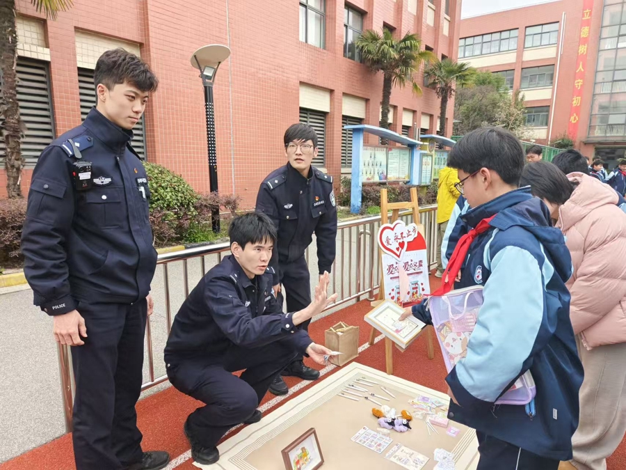 学雷锋的氛围还弥漫在校园里。通河新村派出所的青年民警们带着“绝活”走进泗塘中学,一场别开生面的爱心义卖活动正在进行。一幅幅以Q版警察形象为主题的卡通画作格外吸睛,憨态可掬的警察形象、生动有趣的平安宣传画,引得同学们纷纷驻足。青年民警们一边讲解画作寓意,一边将安全小常识融入其中,在轻松温馨的互动中传递法治观念。此次义卖所得款项将全部用于帮扶困难学生,用点滴爱心汇聚成温暖的力量。
